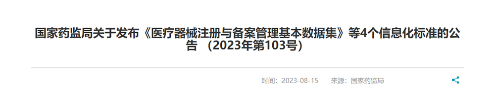 國家藥監局關于發布《醫療器械注冊與備案管理基本數據集》等4個信息化標準的公告..